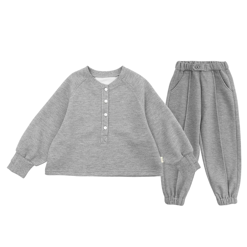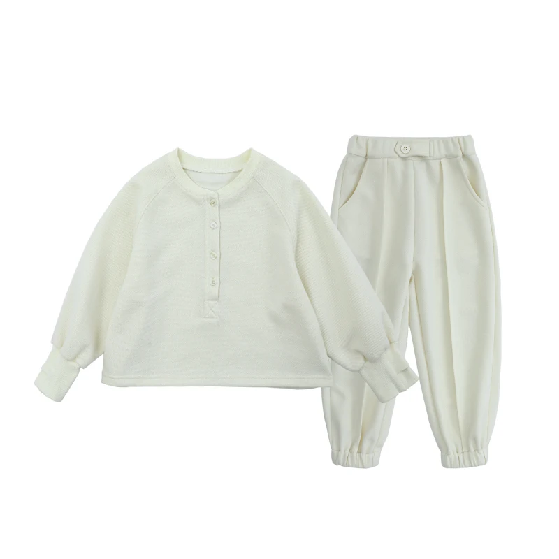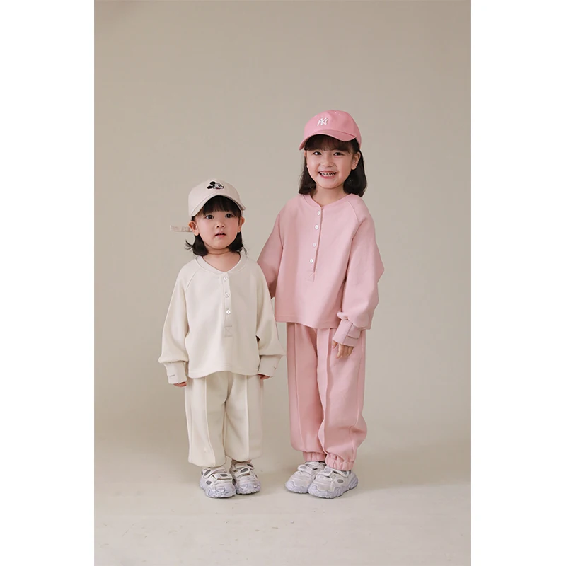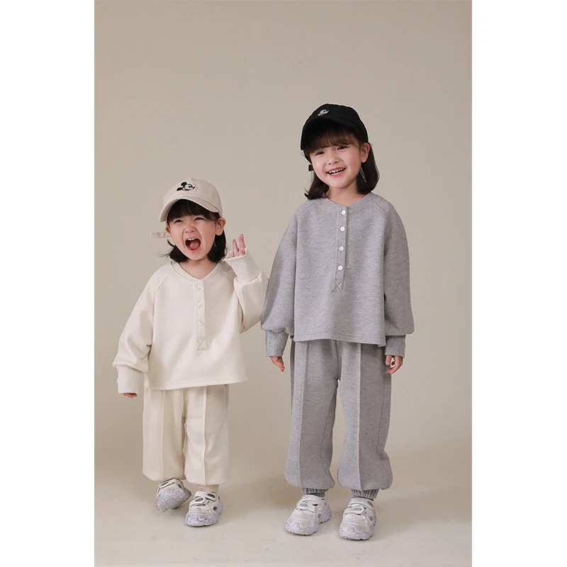C1492 2021 New Arrival Kids Comfortable Clothing Set Solid Color Fashion Girls Boys Jumper and Pants